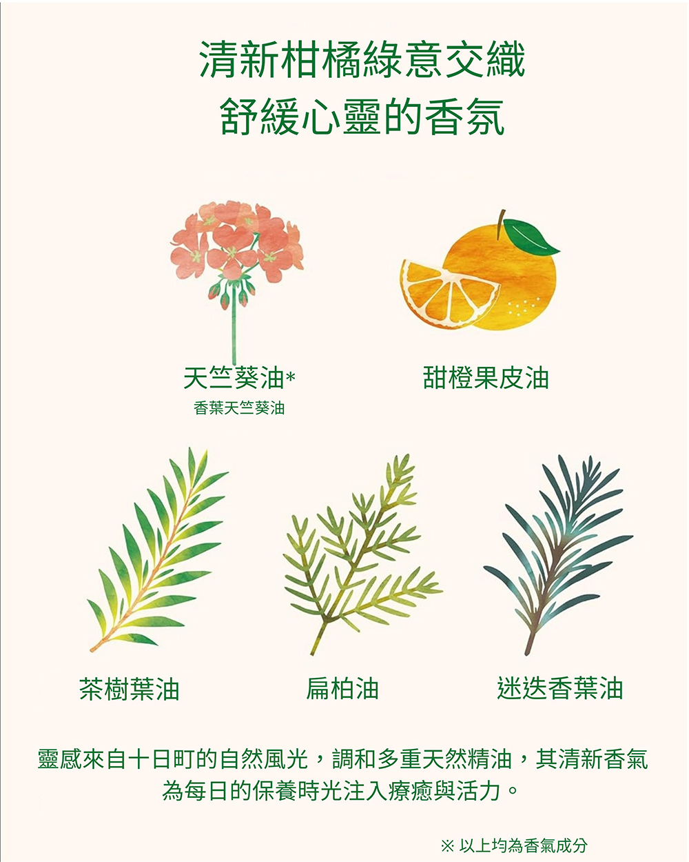 作為可替代化妝水或精華液使用的每日片狀面膜,於潔面後,展開飽浸美容液的膜布,您將沉浸於天竺葵、橙子、檜木、迷迭香、茶樹*⁵等天然精油交織的清新綠意柑橘香調中,感受溫柔包覆。靜敷5~10分鐘,有助提升角質層保水力,同步調理皮脂膜狀態,實現真正的「屏障疊加屏障」修護新哲學。