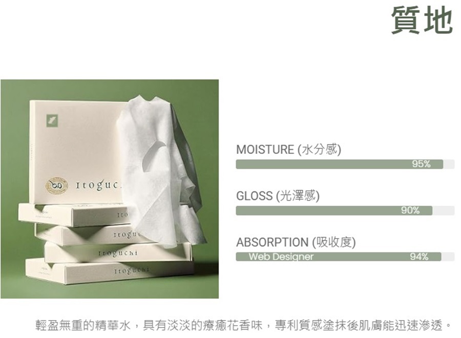 取下面膜瞬間,肌膚透出絲緞般光澤,觸感彈潤飽滿。持續使用,引領您臻達不易動搖、細膩光滑的柔韌美肌。