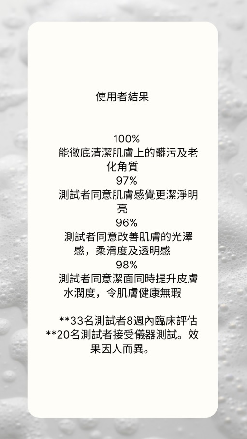 “潔面後,肌膚變得潔淨水潤,而且觸感柔滑”---Sandy L