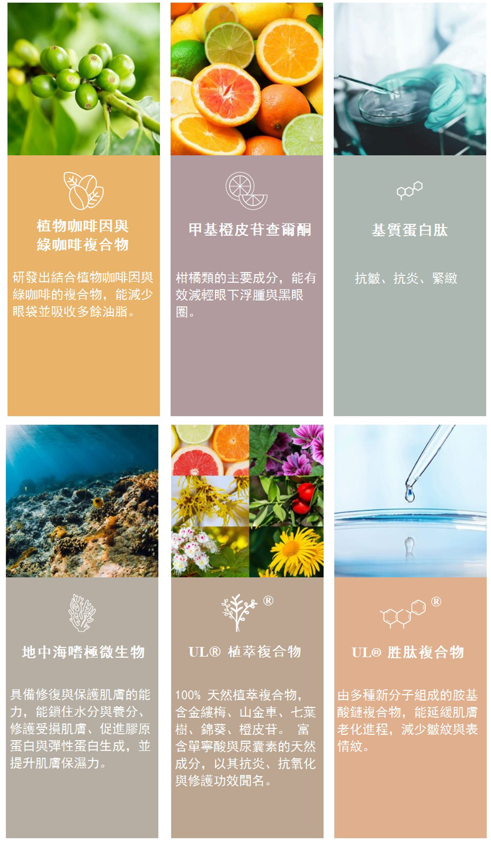 精湛配方可改善浮腫,並有效淡化眼周與唇周的細紋與皺紋。