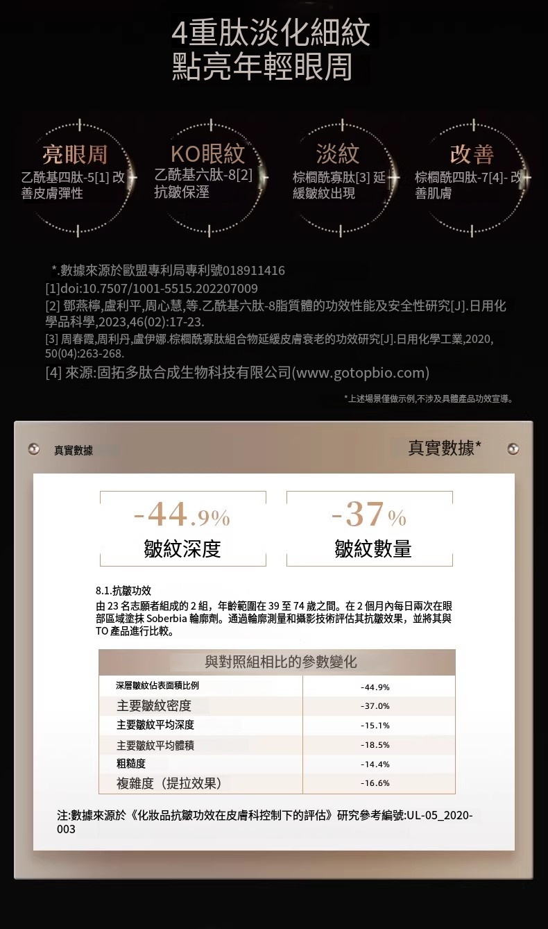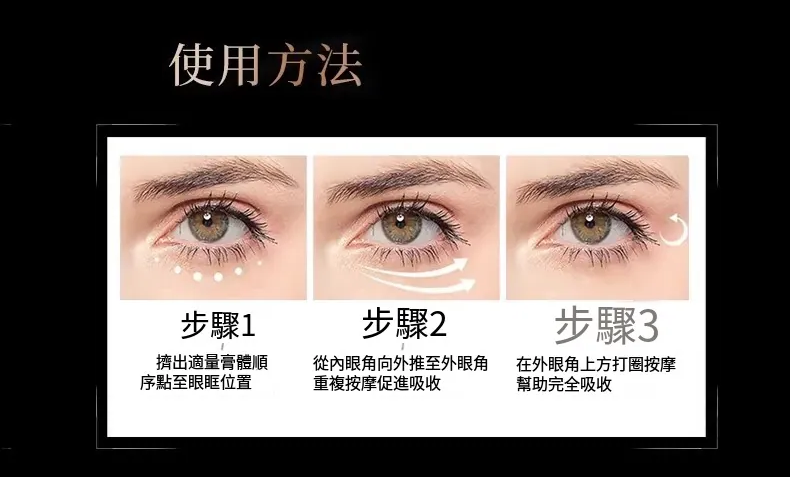 「9.6 號收到晚上開始用,白天偶爾化妝就沒用,用到 15 號,這幾天特別驚喜的發現眼下凹陷的問題改善了好多,之前化妝用遮瑕都遮不住的凹陷神奇的沒有了,上眼皮耷拉的問題也改善好多,一直以為只有醫美能改善的眼周問題被眼霜解決了,強推!」