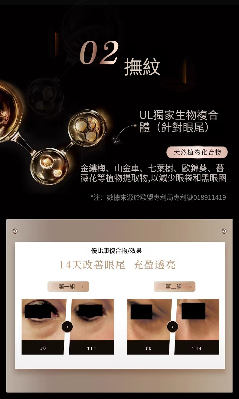 精湛配方可改善浮腫,並有效淡化眼周與唇周的細紋與皺紋。 採用專屬複合成分研發,專門針對整個眼唇區域護理,能滲透至肌膚深層,賦予肌膚獨特光采。 4天即可看見明顯效果,皺紋减少85%。