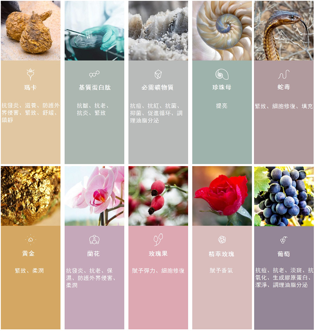 所有成分都是從自然界中挑選和收集的,因為它們在對抗皮膚衰老的所有迹象方面都非常有效。