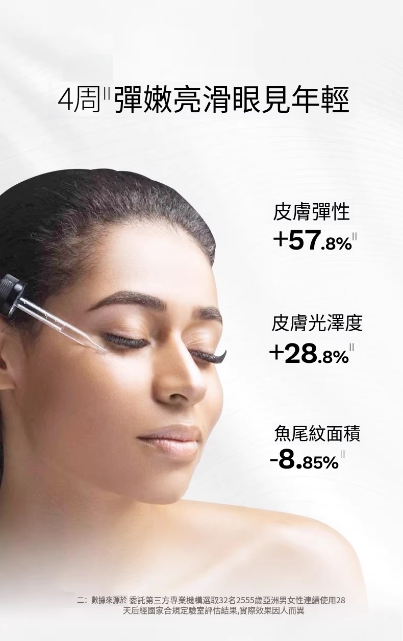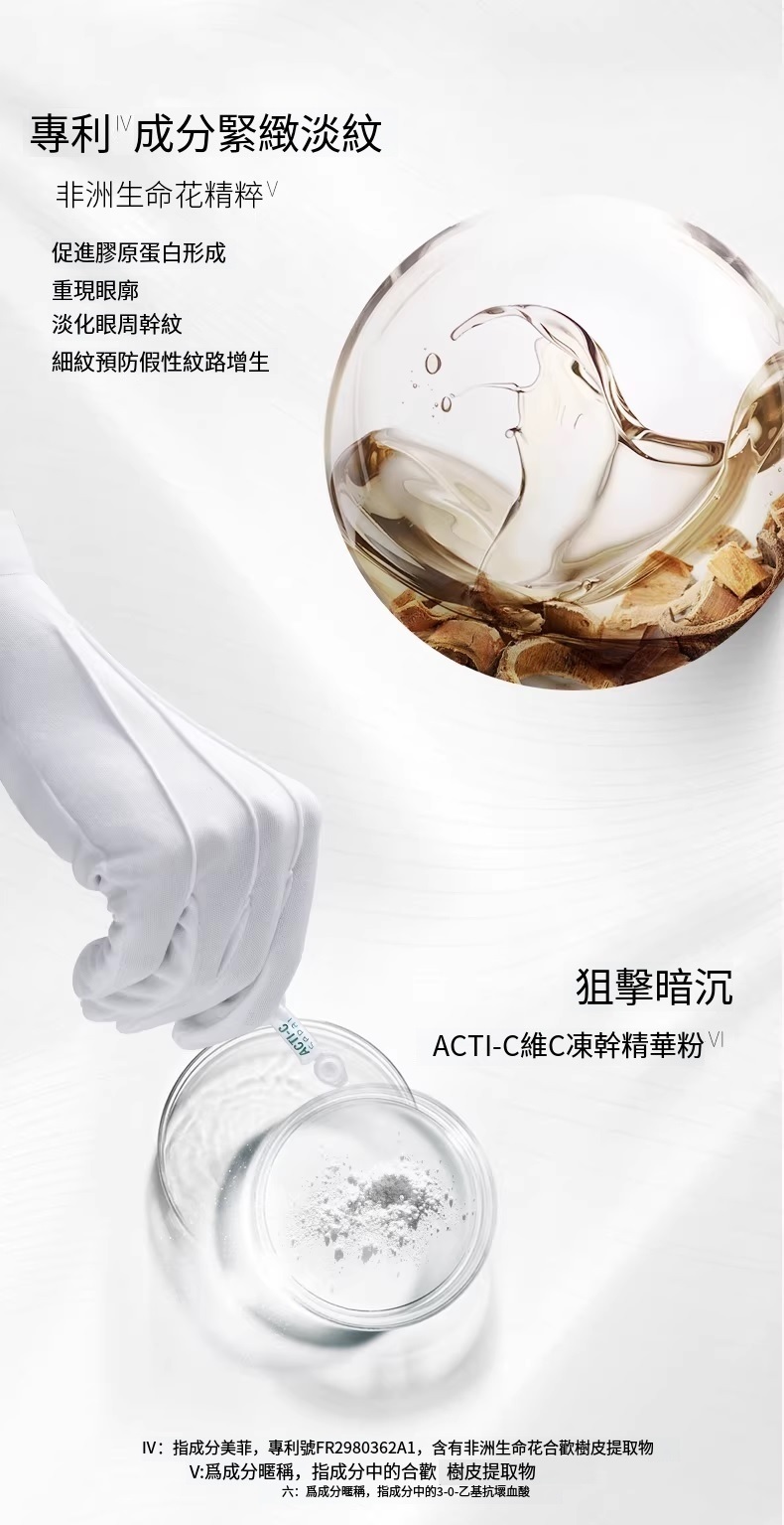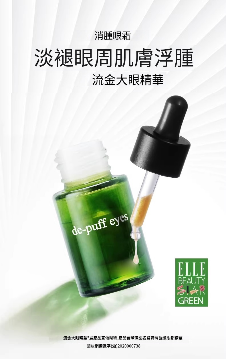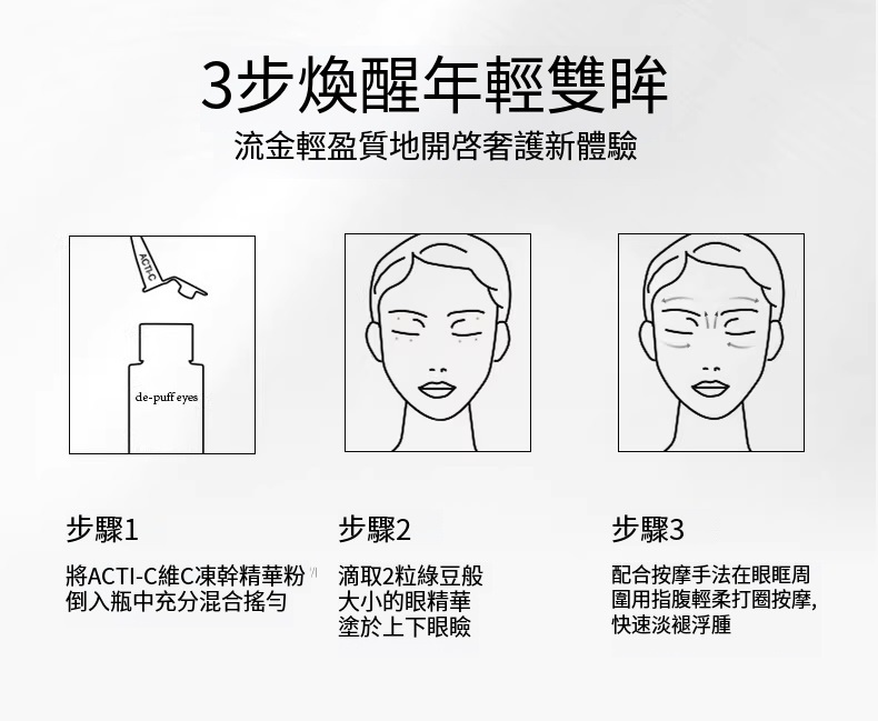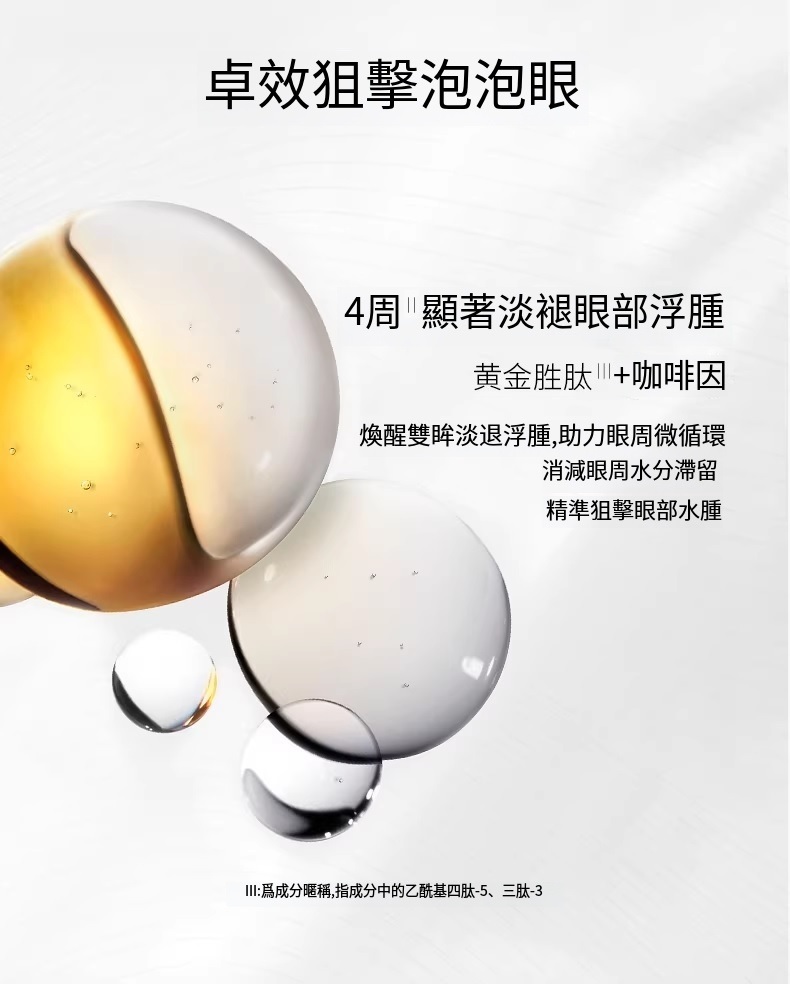 專為眼周浮腫問題設計的眼周精華,改善眼周浮腫外觀,緊致眼周肌膚,賦予眼周煥亮光采。