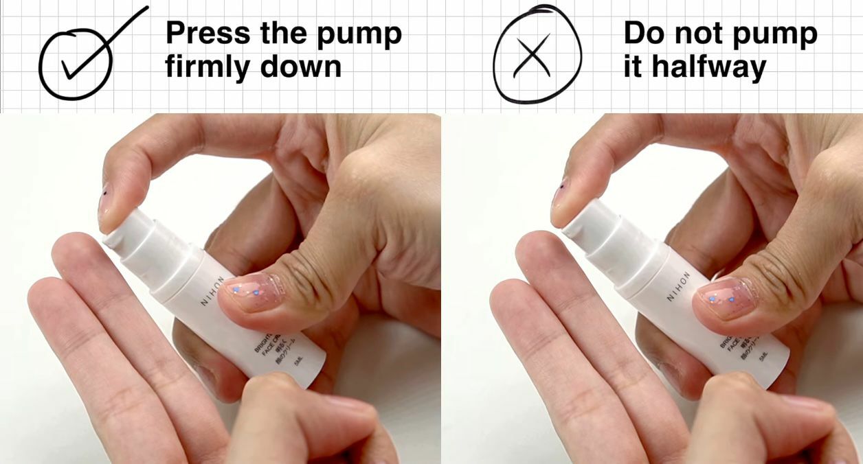 每晚泵1-2泵,一定要完全按壓下去,不要只按一半就停,會導致樽內氣壓減弱,按不出產品