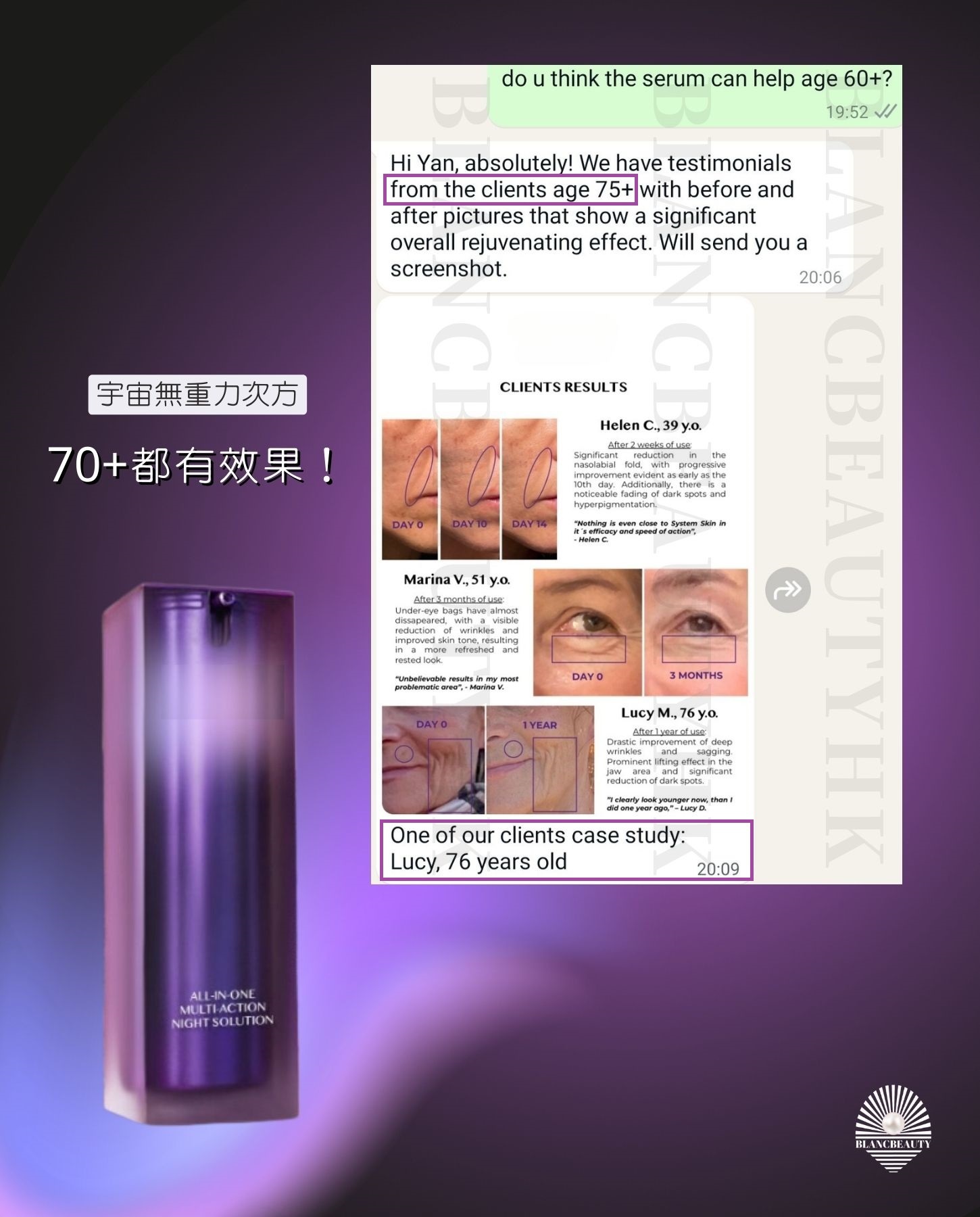 宇宙無重力次方 是第一款也是唯一一款可以在所有 9 個級別上對抗皮膚老化的護膚產品,在創紀錄的時間內獲得無與倫比的效果。