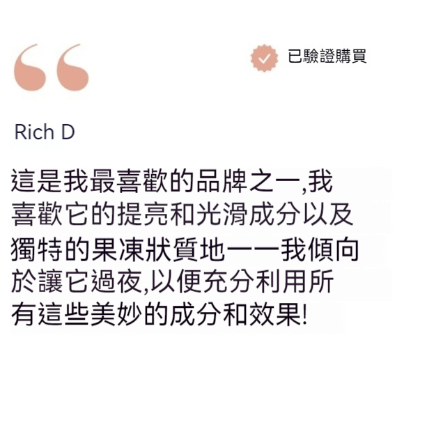 一種特殊、天然、有效的抗氧化和豐盈面部護理,為您的皮膚提供三重作用——它確保多層次的水合作用,刺激細胞更新,並作為皺紋填充劑,防止明顯的衰老迹象。 作為夜間面膜使用,它為您的皮膚帶來真正的放鬆,創造出清新、容光煥發、健康的光澤。