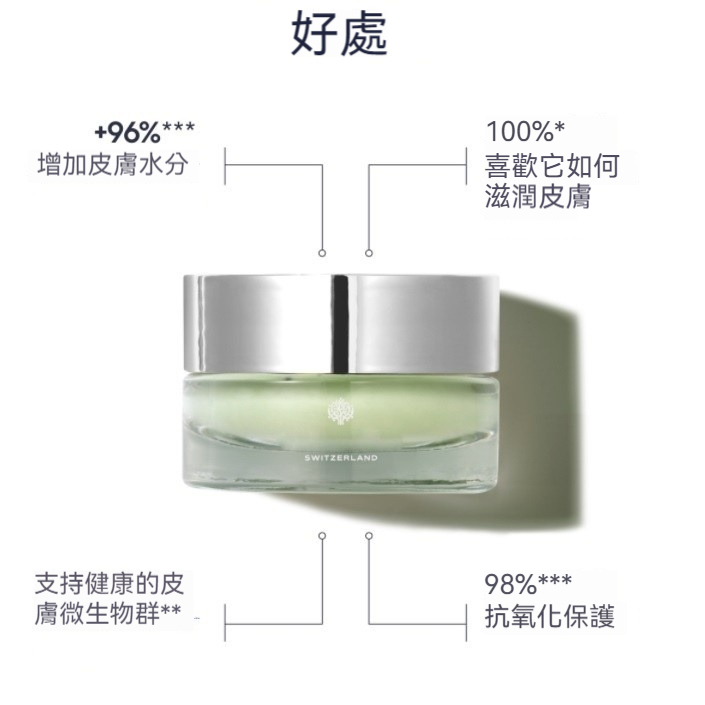 它是一種獨特的保濕和保護性護膚品,支持微生物組的健康平衡,並通過充當皮膚細胞的獨特保護性仿生屏障來防止各種類型的污染。 它完美保濕,明顯促進細胞更新,提供即時的舒適感,防止細紋形成,讓你的膚色飽滿有活力。